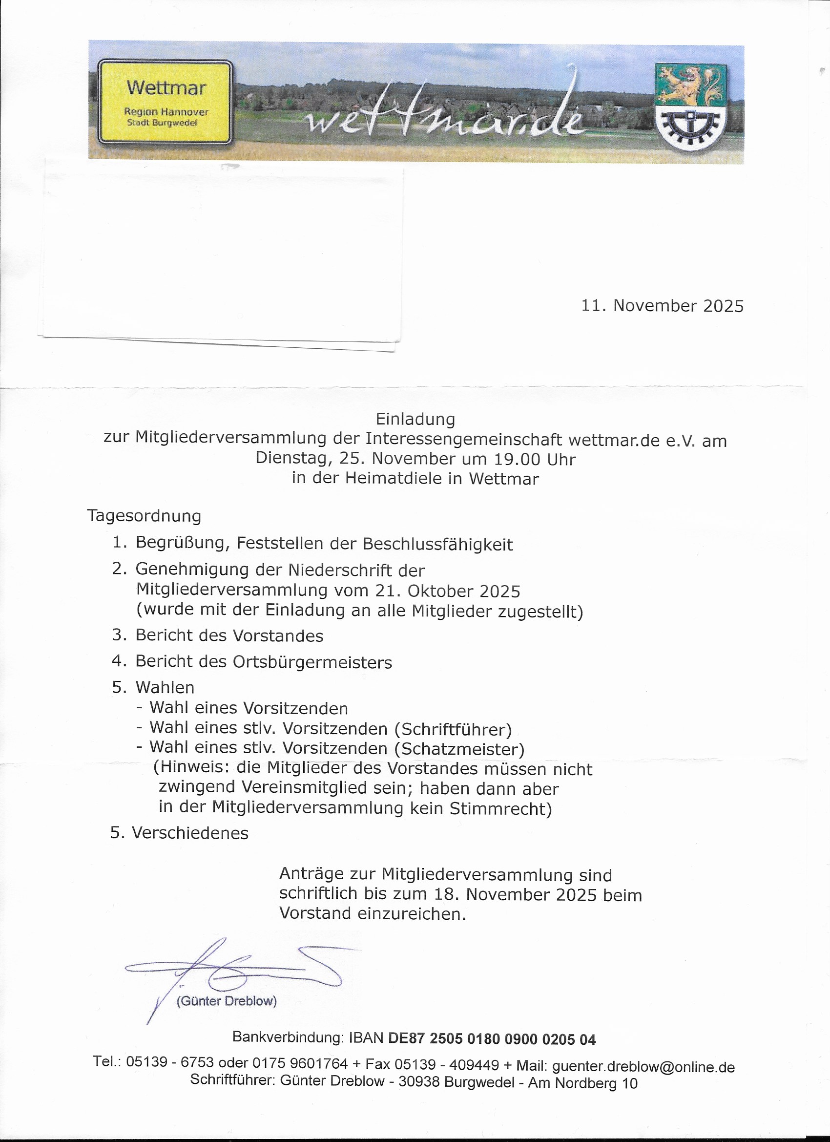 zur Mitgliederversammlung der Interessengemeinschaft wettmar.de e.V. am Dienstag, 25. November um 19.00 Uhr