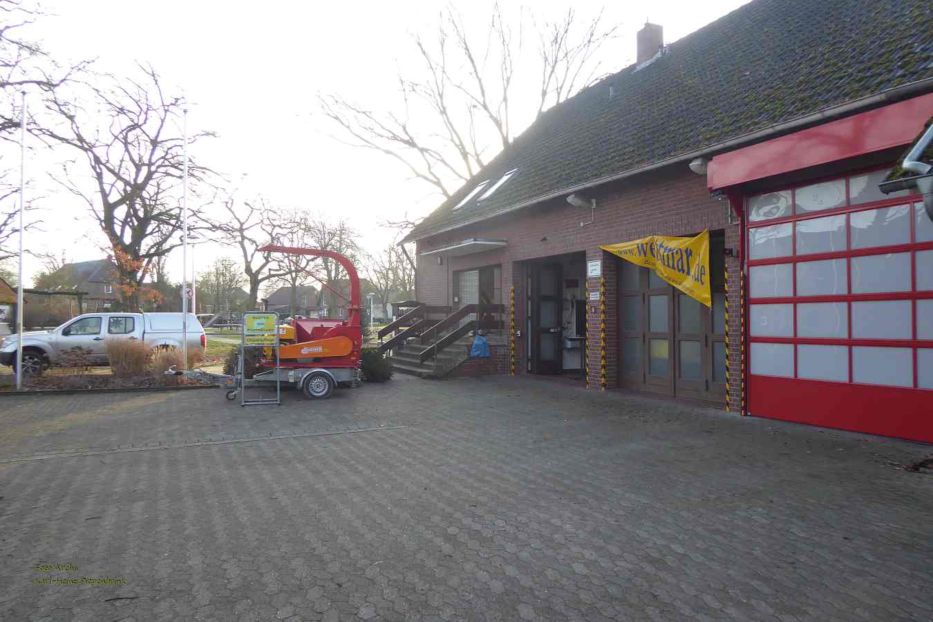 Die Gartenbaufirma Fortmüller aus Burgwedel stellt hier ihren Häcksler samt Mitarbeiter zur Verfügung.