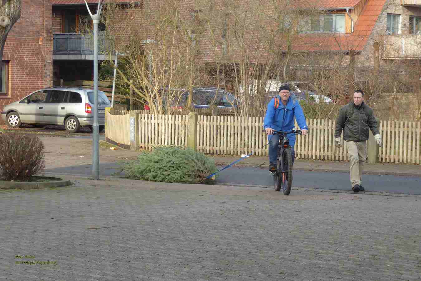 Die ausgedienten Weihnachtsbäume werden auf die unterschiedlichste Art zum Dorfplatz gebracht.