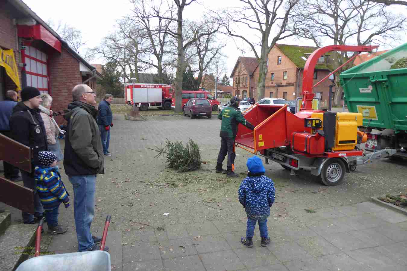 Schon vor dem offiziellen Beginn des Festes haben die Bewohner schon ca. 20 Tannenbäume auf einen Haufen vor den Schredder abgelegt und hierfür von der Interessengemeinschaft einen Gutschein für eine Bratwurst erhalten.