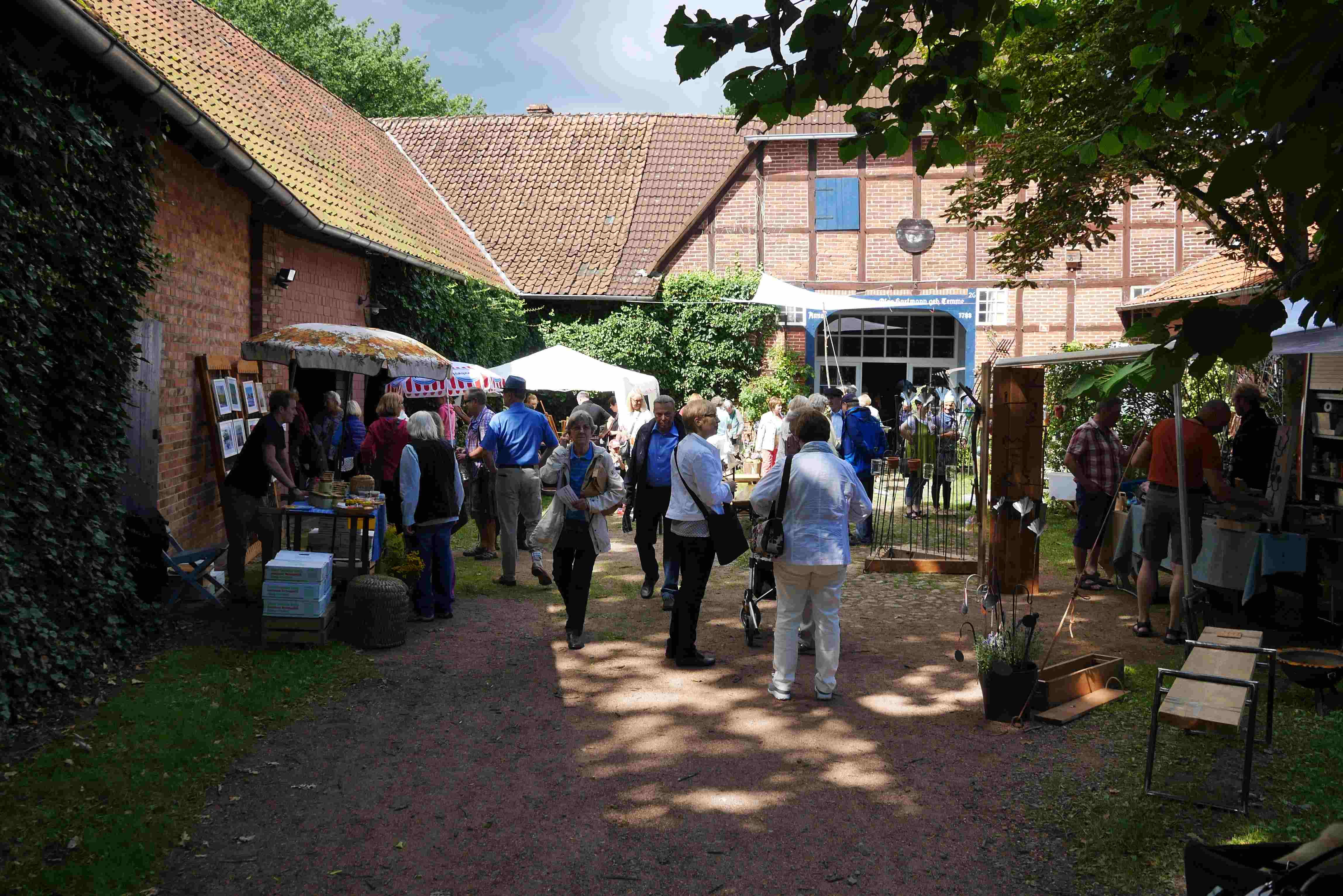 Schon zum siebten Mal laden Wettmarer Familien auf ihre alten Höfe ein. Sieben sind es diesmal. Olthoffs pausieren. Wieder dabei sind Küpmanns und G.W. Brenneke auf seinem Hof in der Heierdrift. Vielleicht zum letzten Mal gibt es Gelegenheit, sein künstlerisches Werk zu bewundern. Gisela Völcker (Keramik) und Silke Fülling (Malerei) stellen bei ihm aus. Am Sonntag sind Jazz-Standards zu hören, gespielt von Michele Möller-Henrichs und ihrem Mann.
